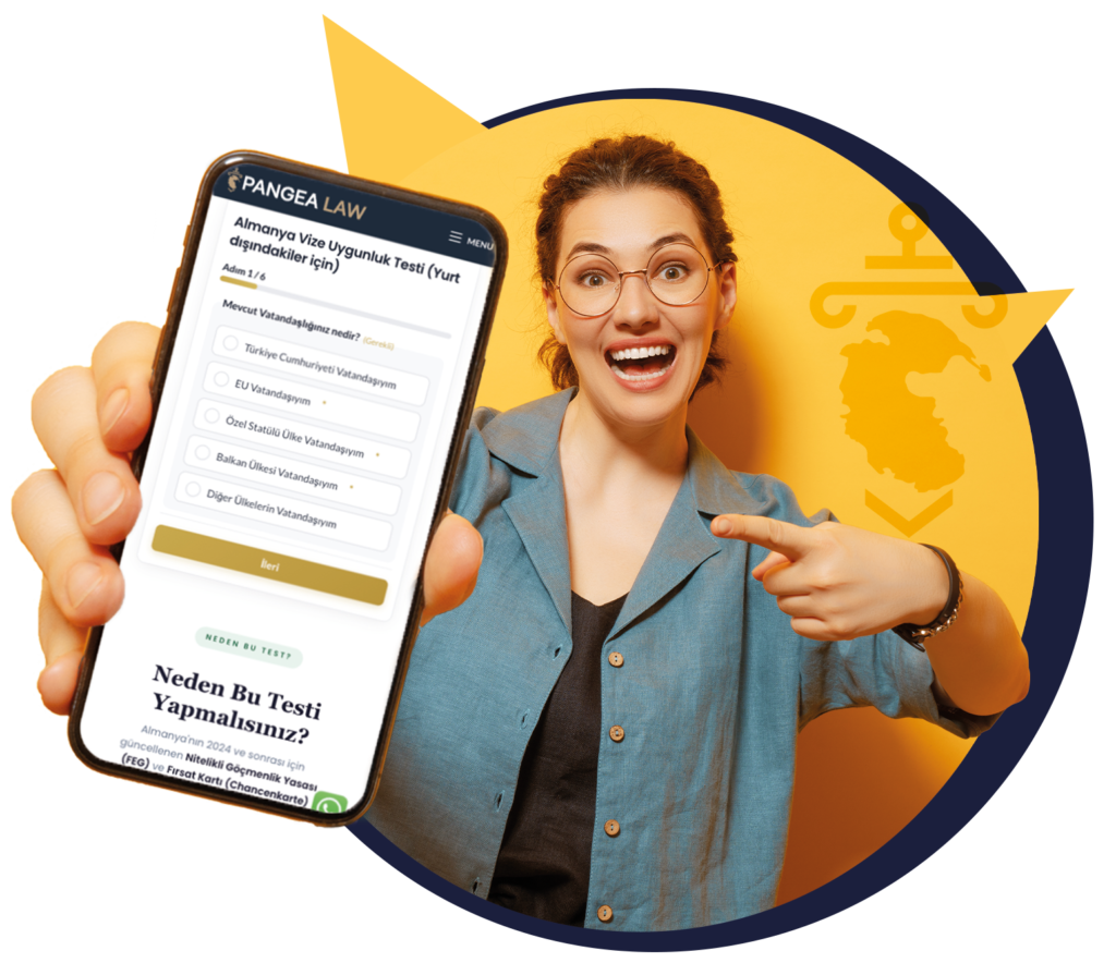 Almanya’ya göç etmek için uygunluğunuzu veya halihazırda Almanya’daysanız oturum tipinizi değiştirip değiştiremeyeceğinizi Alman oturum hukukuna uygun şekilde hazırlanmış olan bu test ile ücretsiz olarak öğrenin.