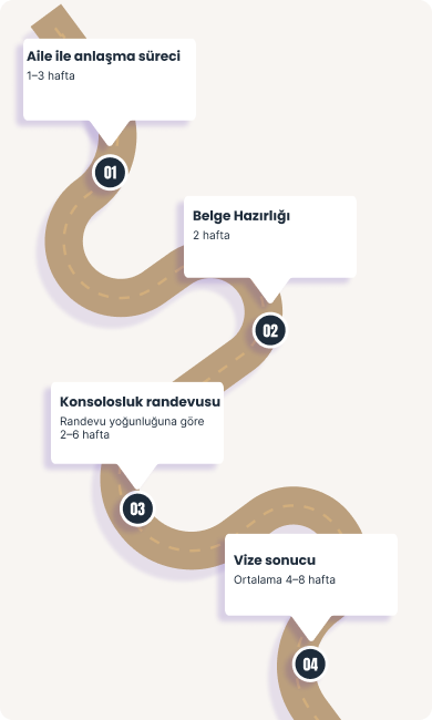 Vize başvuru süreci boyunca birebir destek ve sürekli bilgilendirme hizmeti.